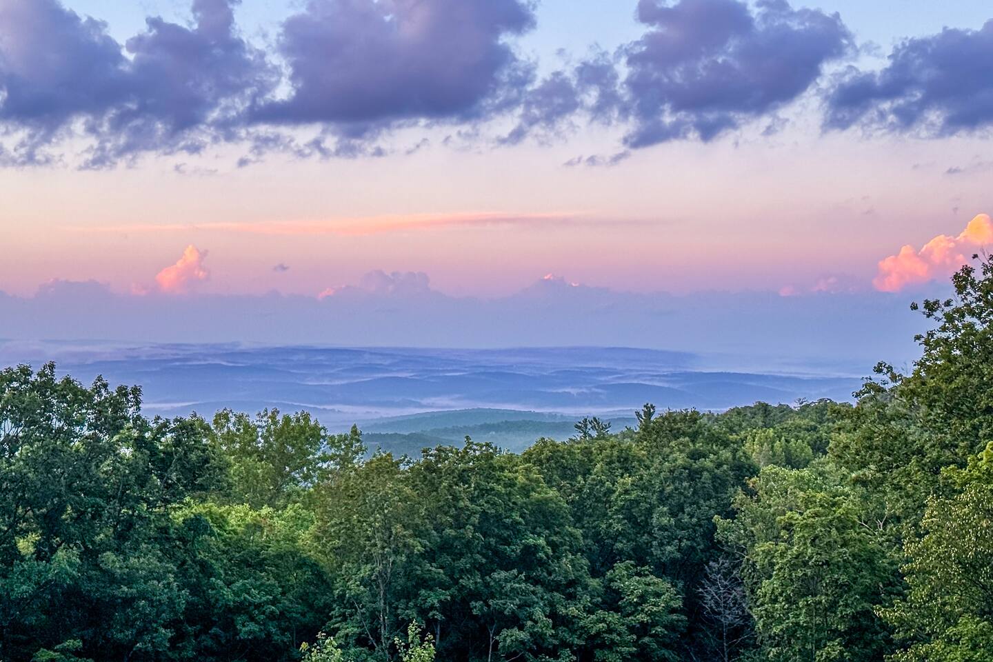 When you enter the Bunglalow, you're met with an open, living room and yoga space with views out and over the view. This space is one unit of a duplex—completely private, with its own entrance and deck separated by a partition. On the lower level, we have 2 living spaces, a kitchen, dining, and a bedroom with a queen-size bed, dresser, nightstand. There's also a chaise lounge and a TV above the dresser that pivots to face either the bed or lounger. The fully stocked kitchen includes all the basics you'll need to cook a good meal, as well as a larger dining table with seating for 6, as well as island seating facing the beautiful 5-state view. The bathroom features an original clawfoot tub, toilet, and vanity with a mirror, plus a few toiletries in case you forgot yours. Upstairs, there is a loft bedroom with a queen size bed, dresser, TV, closet and AC. There is also a small office upstairs with a small sofa, desk and chair - perfect for getting work done in this home away from home. The sliding doors in the kitchen and bedroom open to a deck overlooking a stunning 5-state view—perfect for sunrise coffee or sunset wine. Outdoor furniture is available from late March through November. Please note: The loft is located on a main road, which makes it easy to access year-round—even in winter! That does mean some road noise can be heard, especially during the day. Most guests find it manageable, but we provide earplugs to help ensure a restful night.