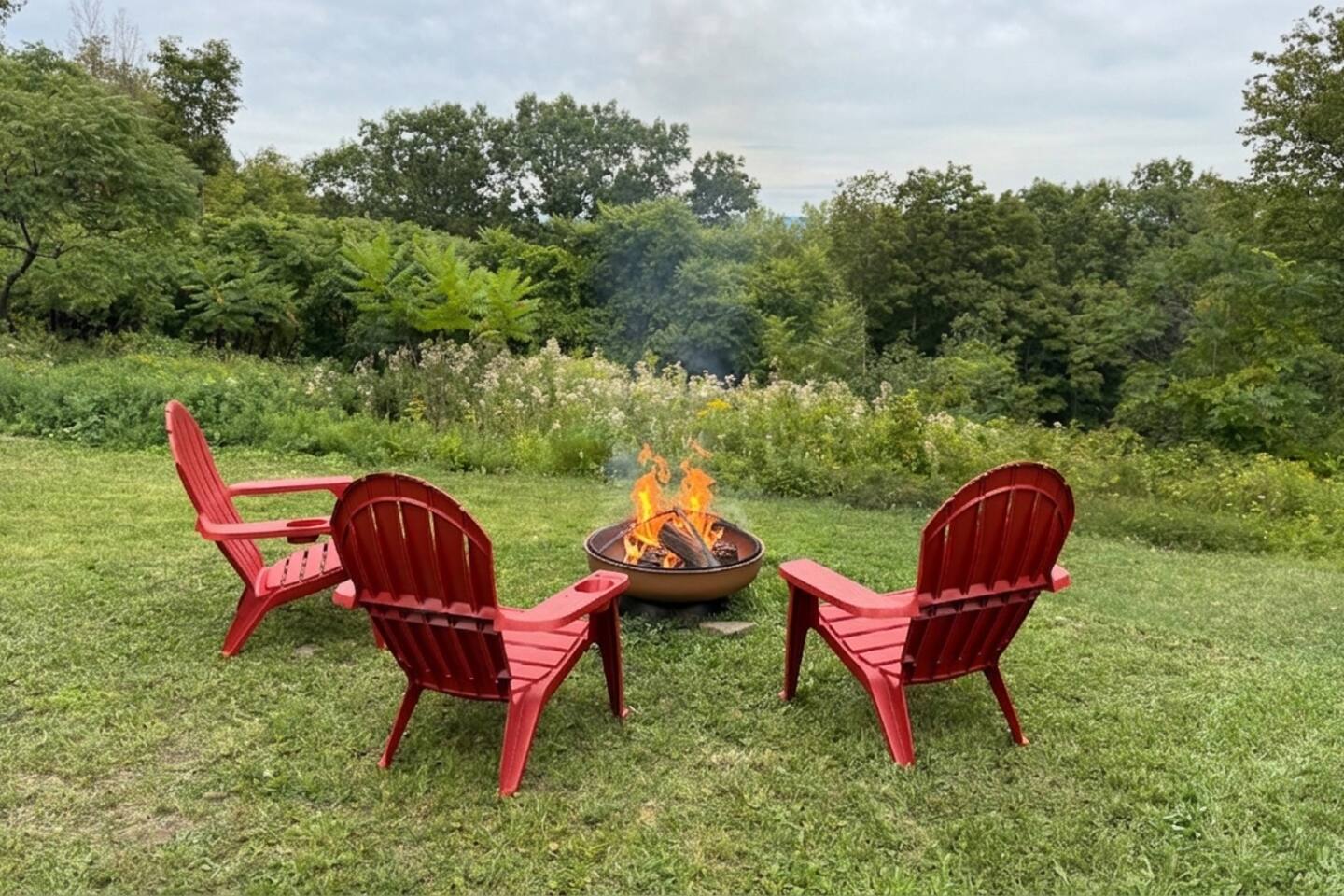 When you enter the loft, you're met with an open, studio-style living area clad in beautiful, warm wood. This space is one unit of a duplex—completely private, with its own separate entrance and deck. On the lower level, we have a queen-size bed, dresser, nightstand, and a desk with a chair. There's also a chaise lounge and a TV above the dresser that pivots to face either the bed or lounger. The fully stocked kitchenette includes all the basics you'll need to cook a good meal. The bathroom features a standing shower, toilet, and vanity with a mirror, plus a few toiletries in case you forgot yours. Up a set of ladder stairs, you'll find our cozy loft area with a second queen-sized bed. The sliding doors in the kitchen open to a private deck overlooking a stunning 5-state view—perfect for sunrise coffee or sunset wine. Outdoor furniture is available from late March through November. Please note: The loft is located on a main road, which makes it easy to access year-round—even in winter! That does mean some road noise can be heard, especially during the day. Most guests find it manageable, but we provide an air purifier for white noise and earplugs to help ensure a restful night.