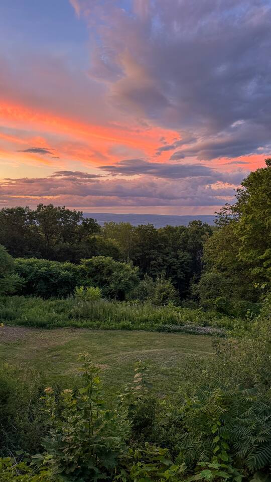 Escape to our unique mountain retreat, nestled peacefully atop a scenic peak with views over New York, Connecticut, Massachusetts, Vermont and New Hampshire. Entirely clad in wood, this cozy haven offers a serene escape with stunning views. Perfect for those seeking tranquility and a connection with nature. We are conveniently located 10 minutes to Windham Mountain and 20 minutes to Hunter Mountain for skiers, and minutes to breathtaking trails.